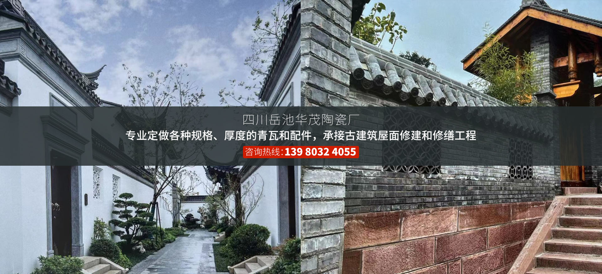 四川岳池华茂陶瓷厂成立于2003年12月24日,注册地位于四川省广安市岳池县石垭镇兴石下街,厂址位于岳池县陶瓷工业园区。从事古建青瓦行业多年,是专门研发、生产、销售高端屋面瓦古风配件的新型企业。公司引进高科技制瓦设备和工艺技术,同时与多家研发技术公司合作,打造出各类高端古建产品,以真诚热情的服务深深赢得了用户的信任,同时公司培养了一支经验丰富,有进取心、责任感和敬业精神的专业技术研发、销售、团队。